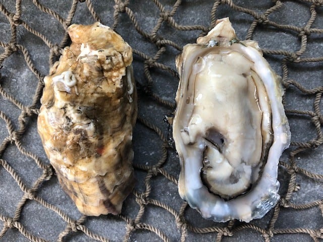 The Golden Mantle is a deep-water cultured oyster with very white, plump meat and a golden mantle. The flavor of this oyster is very mild. This is a good-sized, fruity oyster averaging 3” with a golden/orange-tinged shell. Contact Us